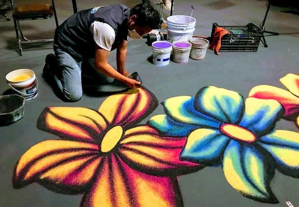 El arte efímero con motivo del concierto acústico de CarlosRivera, para el grito de independencia 2020 fue hecho por el alfombrista internacional Abel Salazar.Para ello se utilizaron arenas multicolores y tomó un tiempo de 3 horas para su elaboración.#Técnica100%sinmoldes.