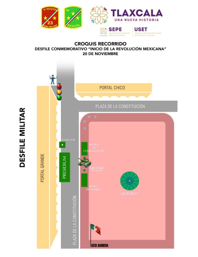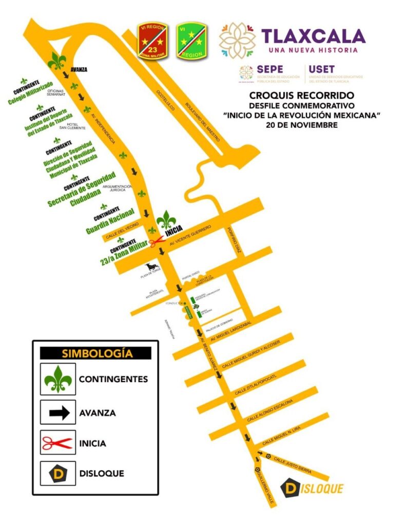 El Gobierno de Tlaxcala, a través de la Secretaría de Educación Pública del Estado (SEPE) y la Dirección de Cultura, Recreación y Deporte (DCRyD), organiza el desfile conmemorativo al “CXII Aniversario del Inicio de la Revolución Mexicana” que se realizará por las principales calles de la capital tlaxcalteca el domingo 20 de noviembre en punto de las 9:00 horas.