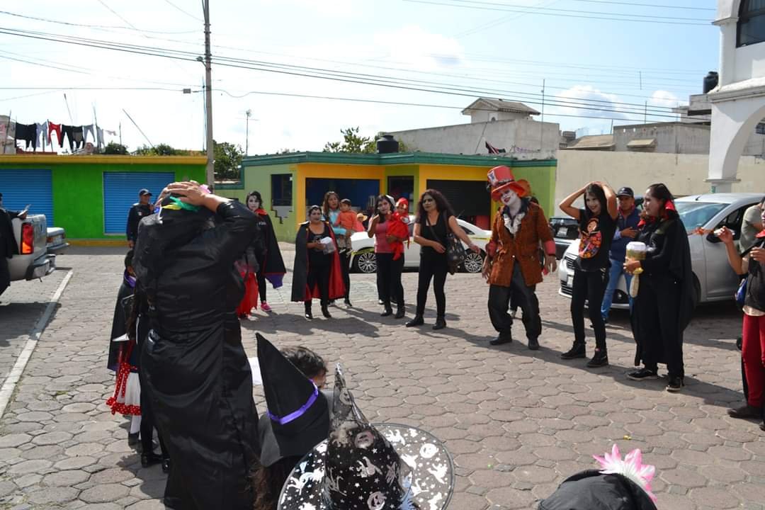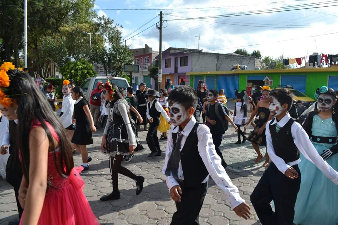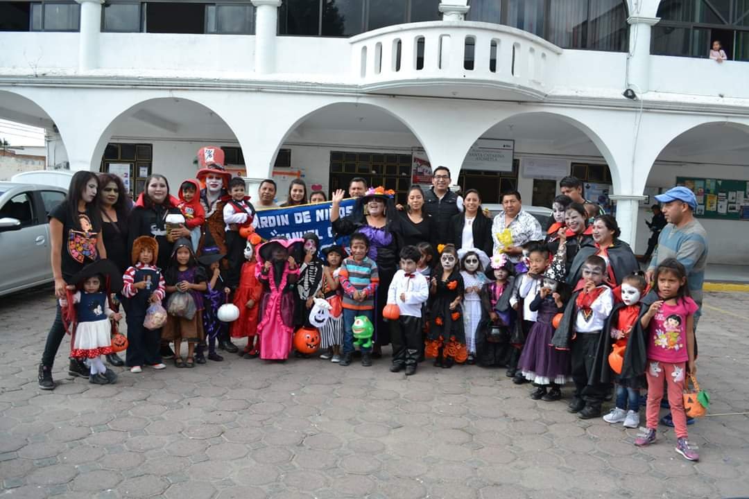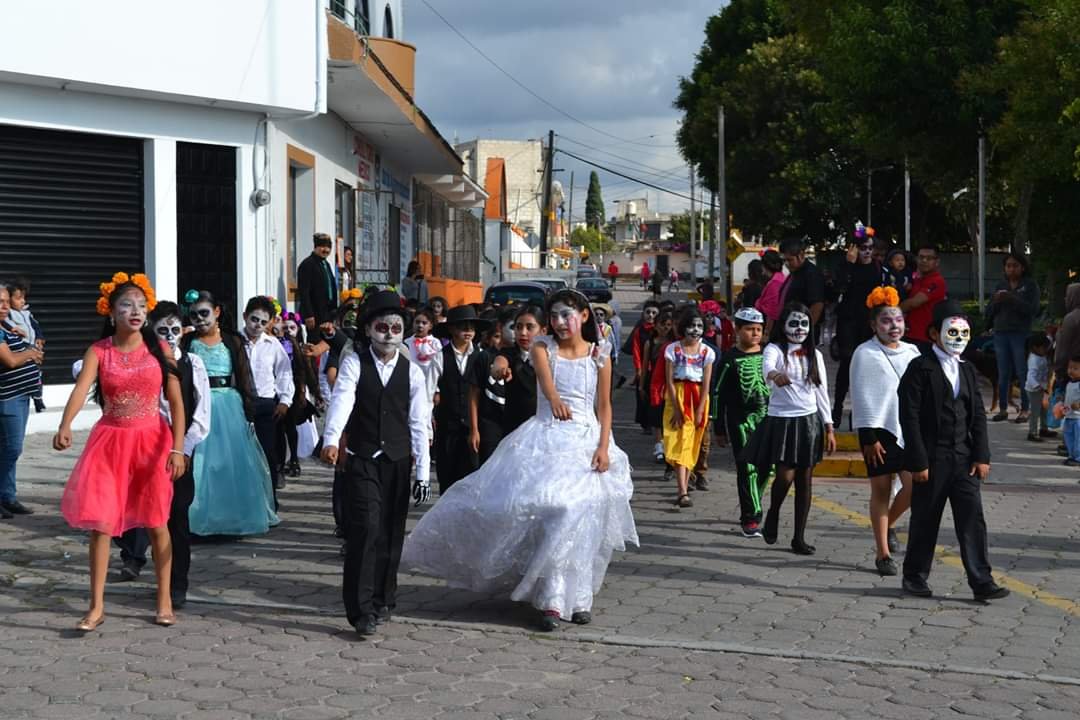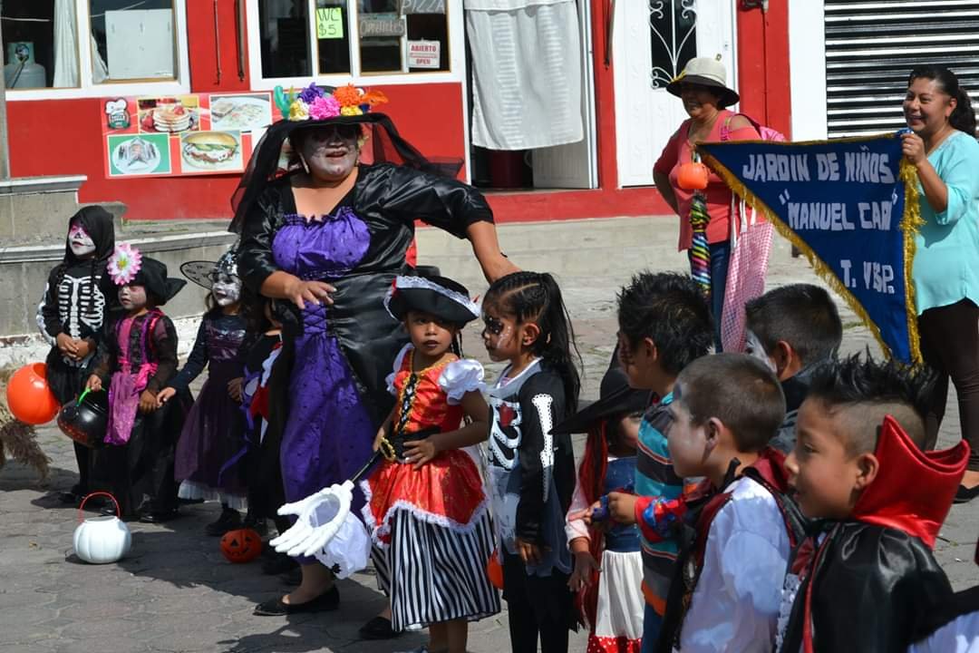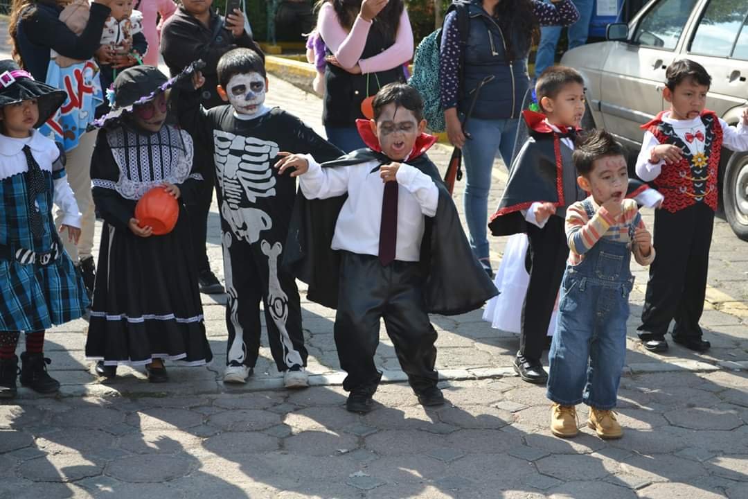 Disfrazados de superhéroes, catrinas, calacas, calabazas, vampiros, etc, los pequeños realizaron un desfile de la escuela al zócalo del municipio, hasta llegar a la presidencia municipal, donde con bailes y al ritmo unísono de ¿Me da para mi calaverita, por favor?, agradecieron la disposición del ayuntamiento por preservar estas tradiciones que fomentan la unión familiar y refuerzan nuestra identidad.