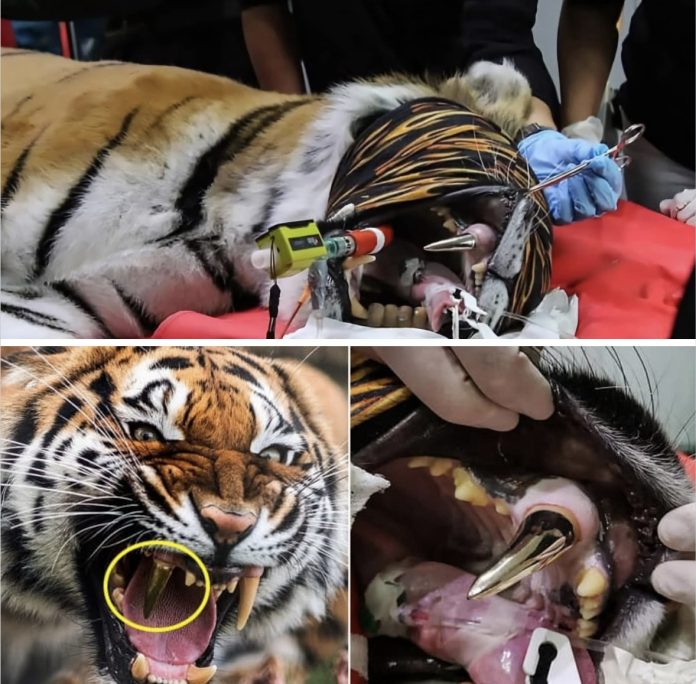 Massweiler, Alemania — Cara, una tigresa de Bengala que vive en el refugio Tierart Wild Animal Sanctuary desde 2015, ha vuelto a masticar sin dolor gracias a un tratamiento dental realmente inusual: la colocación de un colmillo de oro.