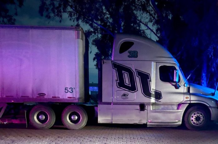 Se trata de un tráiler Freightliner color gris con caja seca blanca procedente del estado de Puebla el cual fue hallado abandonado en esa zona.