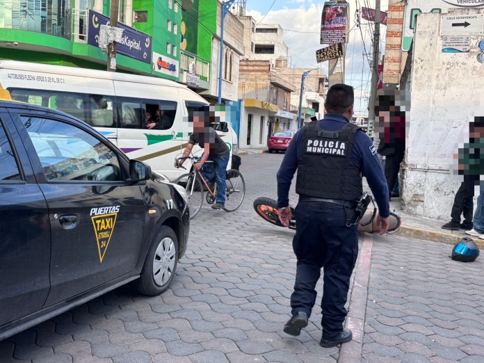 La tarde del 8 de agosto se registró un percance vial en San Pablo del Monte, donde los servicios de emergencia respondieron de manera oportuna al reporte donde se vieron involucrados los conductores de una motocicleta y un taxi.