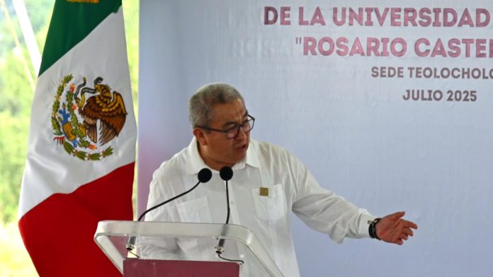 El secretario de Educación Pública del Estado (SEPE), Homero Meneses Hernández asistió a la colocación de la primera piedra de la Universidad Nacional Rosario Castellanos, unidad académica Teolocholco, evento que fue encabezado por la gobernadora Lorena Cuéllar Cisneros.