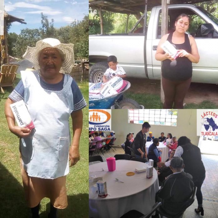 A través del Lic. Pedro Maldonado Galicia, de Lácteos Tlaxcala, el Grupo SAGA Ayuda Social A.C. recibió la donación de 2400 litros de leche, que beneficiarán a la población más vulnerable de Tlaxcala.