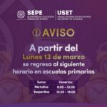 ANUNCIA SEPE–USET CAMBIO DE HORARIO PARA ESCUELAS PRIMARIAS