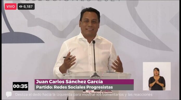 Durante el debate, el candidato de Redes Sociales Progresistas (RSP) al gobierno de Tlaxcala, Juan Carlos Sánchez García, SAGA, anunció...