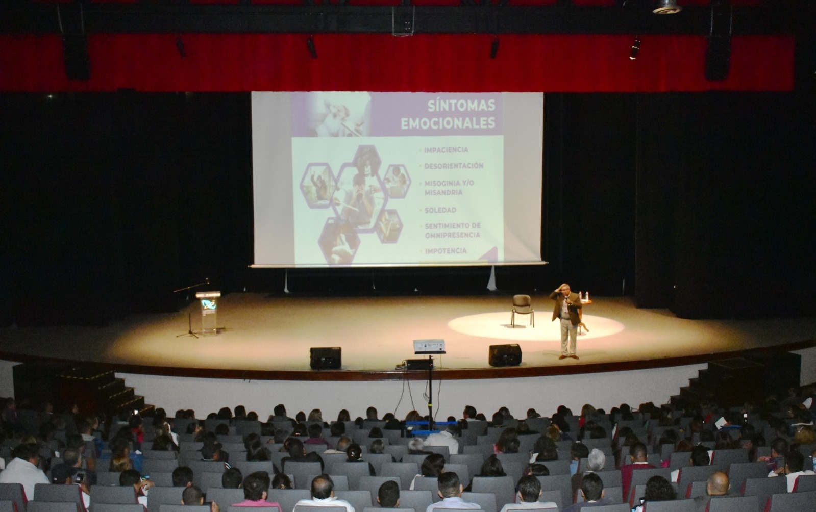 Una de las instancias más esperadas fue la conferencia magistral dictada por Norberto Cervantes Contreras, director general del Cecyte–Emsad, bajo el título “Síndrome de Burnout”, en la que brindó herramientas para reconocer y combatir el agotamiento emocional en el entorno educativo.
