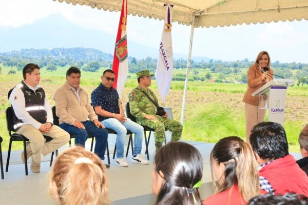 La titular del Ejecutivo local, Lorena Cuéllar Cisneros, en compañía de autoridades federales, estatales y municipales, colocó la primera piedra para la construcción del mercado de pirotecnia que estará ubicado sobre la carretera Xaloztoc–Terrenate, en el ejido “La Concha” del municipio de Xaloztoc.