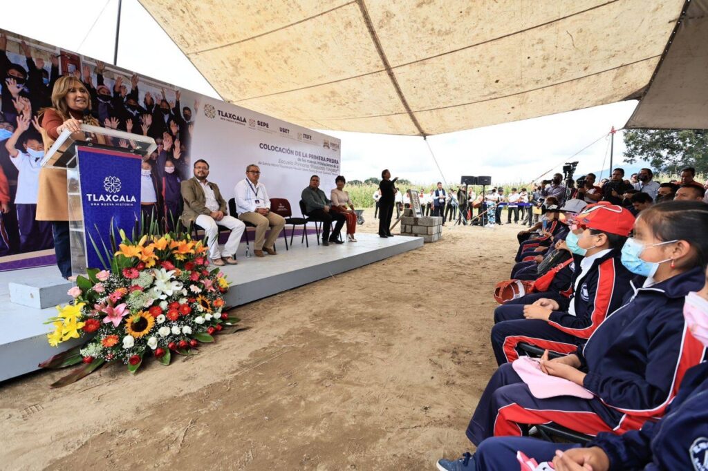 La gobernadora Lorena Cuéllar Cisneros colocó la primera piedra para la edificación de la primaria “Pioquinto Tlilayatzi” en la comunidad de Tlacatecpa, municipio de Contla, la cual tendrá una inversión superior a los 2.1 millones de pesos y beneficiará a 232 estudiantes.