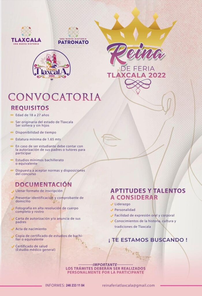 Con el fin de impulsar las actividades culturales dentro del marco de “La Gran Feria de Tlaxcala 2022” el patronato para las exposiciones y ferias en la ciudad de Tlaxcala emite la presente convocatoria para el certamen de “REINA DE FERIA TLAXCALA 2022” 🎡👸🏻🎠