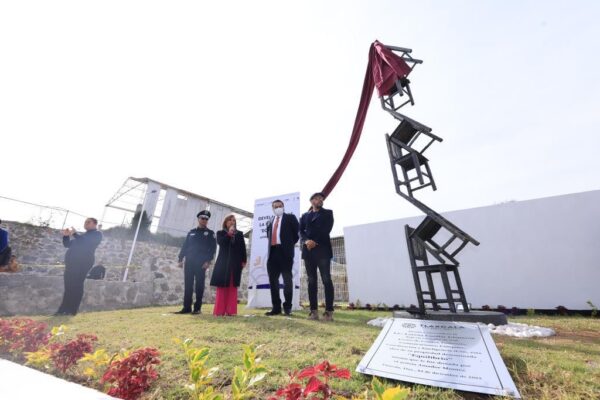 La gobernadora de Tlaxcala, Lorena Cuéllar Cisneros, develó la escultura “Equilibrio” del artista Amador Montes, en las instalaciones del Centro de Control, Comando, Comunicaciones, Cómputo, Coordinación e Inteligencia (C5i), como parte de las acciones para conjuntar el arte con la seguridad y prevención del delito.