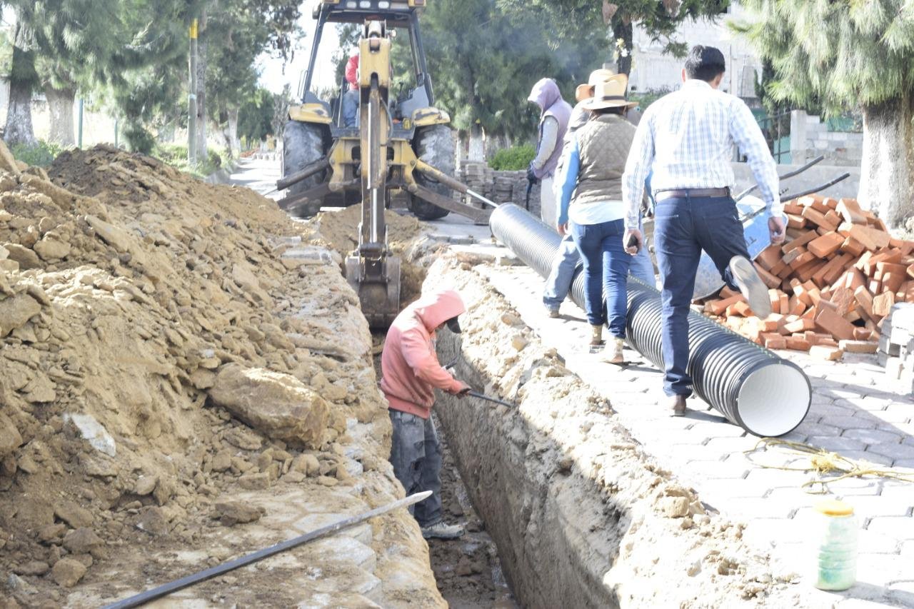 Esta es una obra de drenaje sanitario que beneficiará a los habitantes, con el objetivo de cambiar la calle principal debido a que constantemente por el ensolve de raíces de los pinos, el drenaje colapsaba constantemente, afectando a los habitantes.