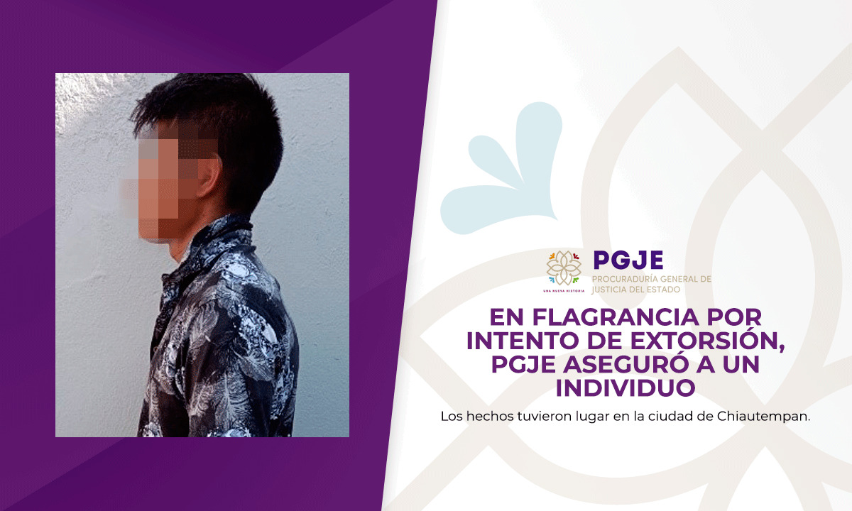 Elementos de la Policía de Investigación, adscritos a la Procuraduría General de Justicia del Estado (PGJE), detuvieron en flagrancia a un individuo cuando intentaba cobrar dinero producto de una extorsión, por lo que fue puesto a disposición del Ministerio Público.