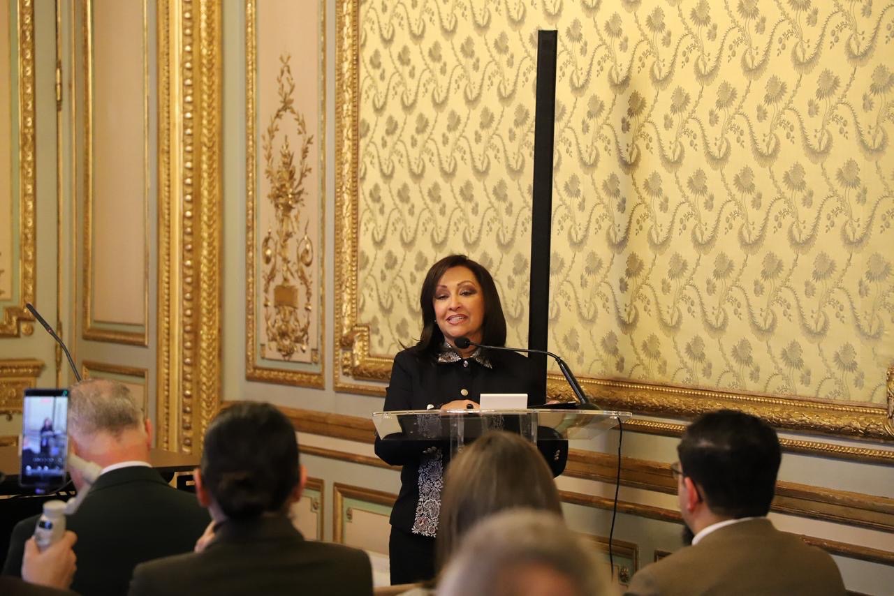 - “Decir que sin Tlaxcala no hay México no es una consigna: Es una conclusión histórica”, subrayó la mandataria en este encuentro efectuado en “Casa de América”, en presencia de autoridades, académicos e investigadores.