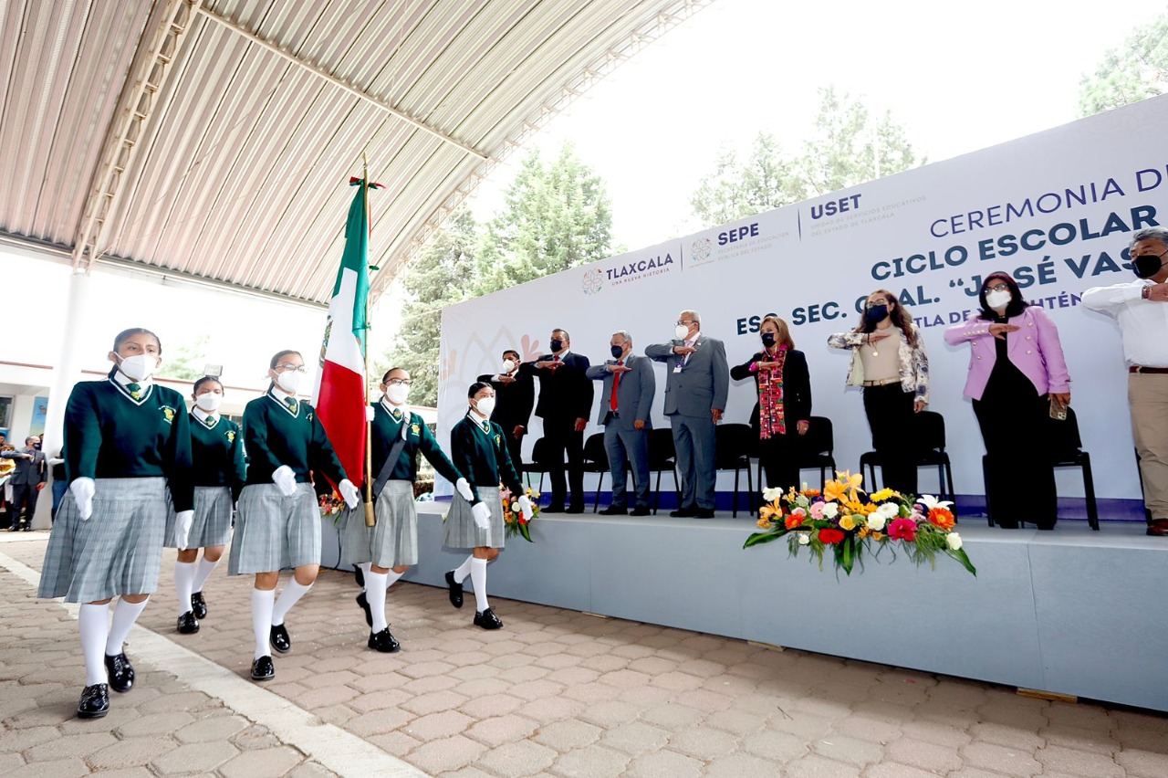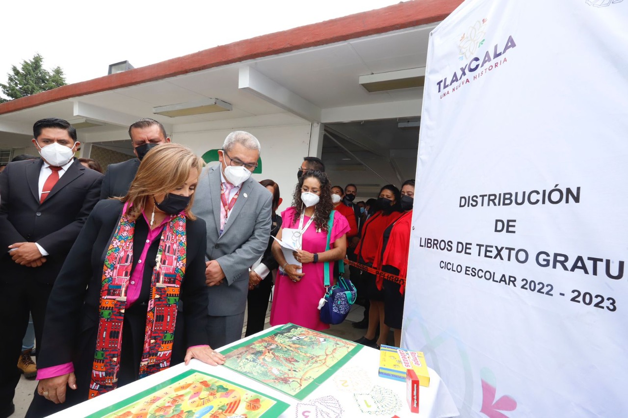La gobernadora del estado, Lorena Cuéllar Cisneros, encabezó la ceremonia de clausura del ciclo escolar 2021-2022 en la Secundaria General “José Vasconcelos” del municipio de Papalotla. Ahí mismo dio el banderazo de salida a la distribución de un millón 665 mil 572 libros de texto para 260 mil 409 alumnos de preescolar, primaria y secundaria de la entidad.