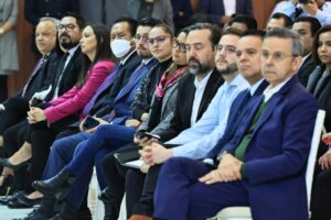 Al evento también asistieron, la presidenta de la Mesa Directiva del Congreso local, Leticia Martínez Cerón; el secretario de Gobierno, Sergio González Hernández; la magistrada Anel Bañuelos Meses en representación de la presidenta del Tribunal Superior de Justicia del Estado (TSJE), Mary Cruz Cortés Ornelas y autoridades de los tres niveles de gobierno.