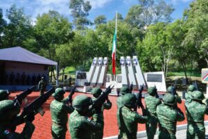 Posteriormente, acompañada del comandante de la 23 Zona Militar, Gumaro Cabrera Osornio, la mandataria estatal montó guardia de honor y colocó una ofrenda floral en el monumento a los cadetes.