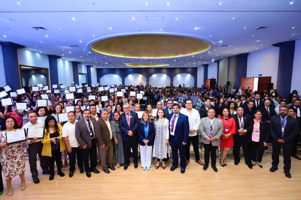 De manos de la mandataria estatal recibieron sus constancias las y los docentes Teresa Alpízar Flores, Valente Sánchez Flores, Ruperta Pérez Peralta, Ana Luisa Altamirano Robles, Ariana Cuahutle Covarrubias, Rosalba Aguilar Torres, Rubén Sánchez Cuéllar y Edith Rojas Bretón.