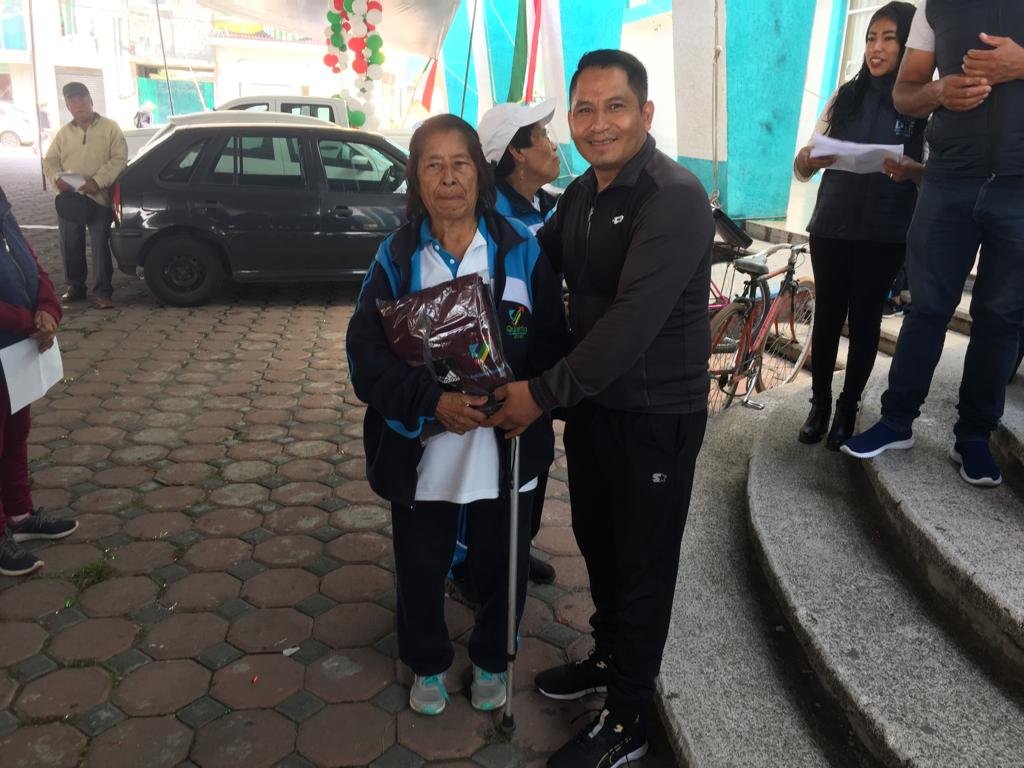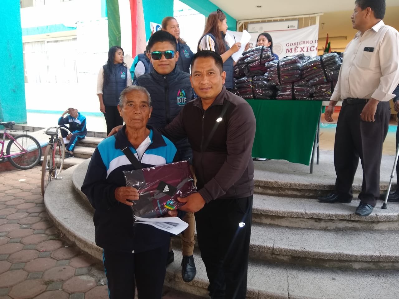 El alcalde de Santa Cruz Quilehtla, Óscar Pérez Rojas hizo entrega de uniformes para activación física a los grupos de la tercera edad ‘Canitas Blancas y Años Dorados’, pertenecientes a la cabecera municipal.