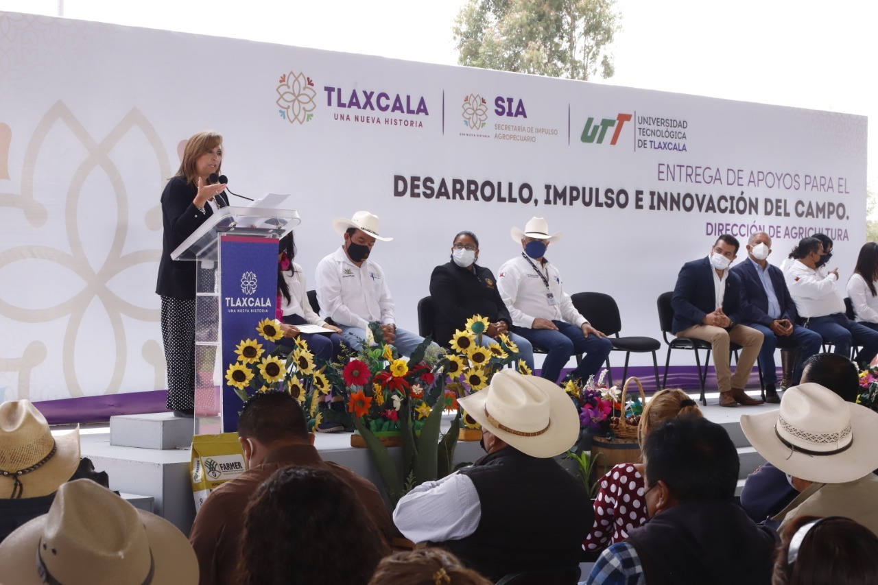 En la Universidad Tecnológica de Tlaxcala (UTT), la titular del Ejecutivo local refirió que los programas están llegando a los 60 municipios del estado, así como un presupuesto inédito que autorizó el Congreso del Estado de 100 millones de pesos este año para el campo, “para mí es muy importante llegar a todos los productores porque con sus manos, la dedicación y esmero que le han puesto al campo durante años nos dan de comer”.