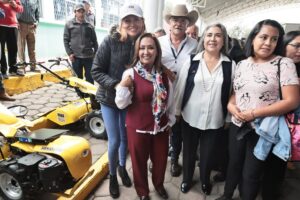 La gobernadora Lorena Cuéllar Cisneros entregó maquinaria agrícola gratuita a 31 personas beneficiarias del Programa Fomento e Innovación Productiva, durante la Feria de la Agricultura Familiar y la Seguridad Alimentaria realizada en la Plaza del Huehue del municipio de Yauhquemehcan.