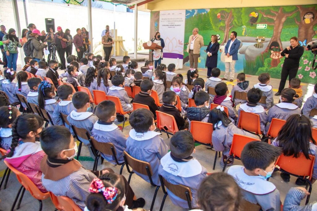 La gobernadora Lorena Cuéllar Cisneros entregó la rehabilitación de los edificios A, B y C, además de obra exterior en el preescolar “Leonarda Gómez Blanco”, ubicada en el municipio de Chiautempan, en los que destinó una inversión de 494 mil 871 pesos en beneficio de casi 100 niñas y niños.