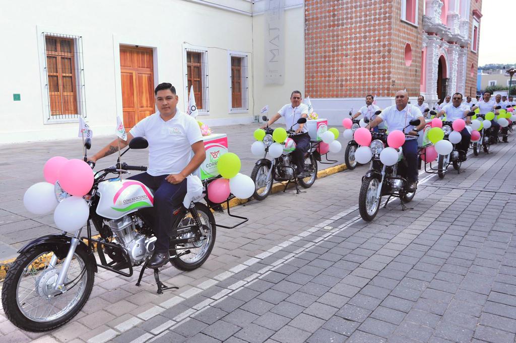 •Las y los carteros recibieron 13 motocicletas que darán servicio en 10 municipios