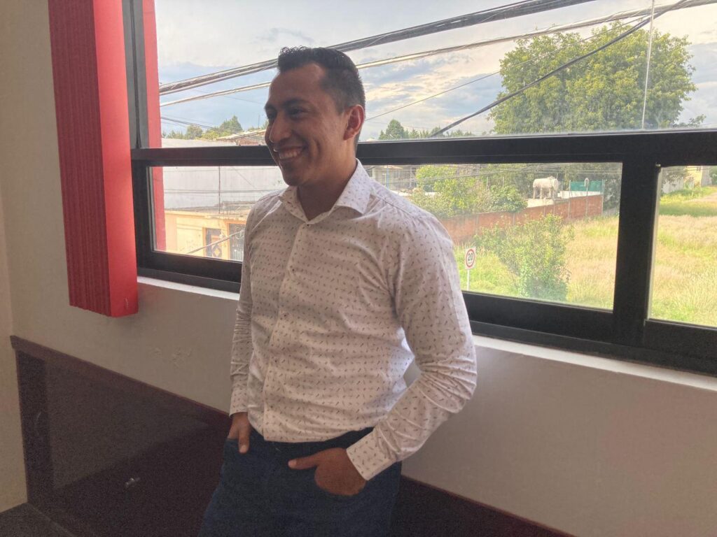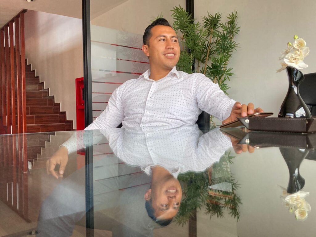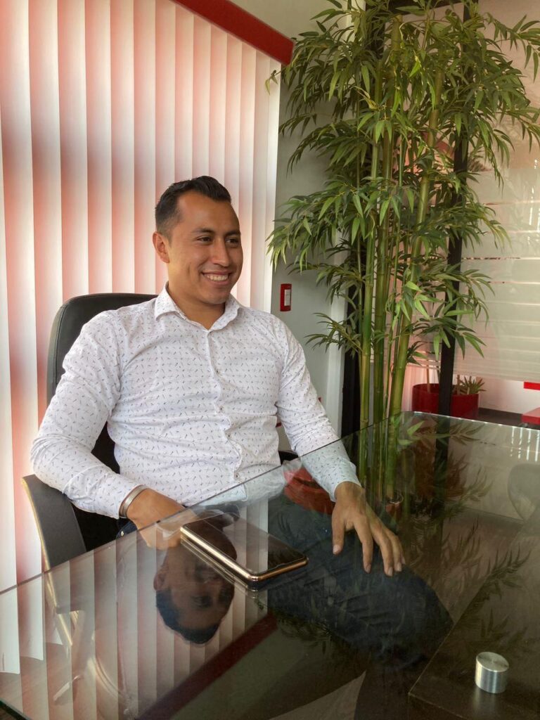 Pero que creen, me llevo una agradable sorpresa al darme cuenta en lo responsable y puntual que es, al llegar a la hora acordada en sus oficinas. Con una sonrisa sincera, me dice -No te doy la mano por el covid-19- antes de invitarnos a pasar al interior de sus oficinas.