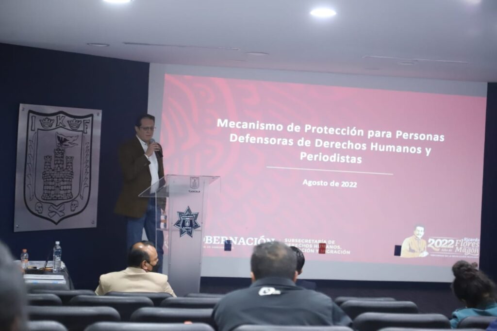 Ahí, el director Jurídico de la Segob, Miguel Sánchez Ramírez, quien acudió en representación del secretario de Gobierno, Sergio González Hernández, ratificó el compromiso de la gobernadora del estado, Lorena Cuéllar Cisneros, por garantizar la libertad de expresión en Tlaxcala a través de acciones palpables como fue la creación de la Oficina para la Protección de Personas Defensoras de Derechos Humanos y Periodistas, así como cada una de las acciones que se emprenden desde esta área como es la aplicación de las Medidas de Prevención, Medidas de Protección y Medidas Urgentes de Protección, así como la capacitación permanente de los sectores que atiende.