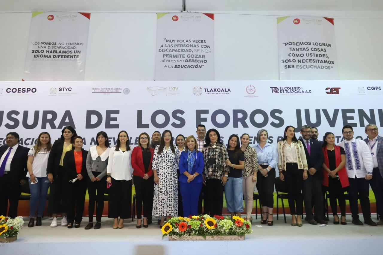 La gobernadora de Tlaxcala, Lorena Cuéllar Cisneros encabezó la clausura de los “Foros juveniles para la integración de la nueva Ley de Personas Jóvenes para el Estado de Tlaxcala”, organizados por la presidenta de la Comisión de Juventud y Deporte del Congreso local, Leticia Martínez Cerón.