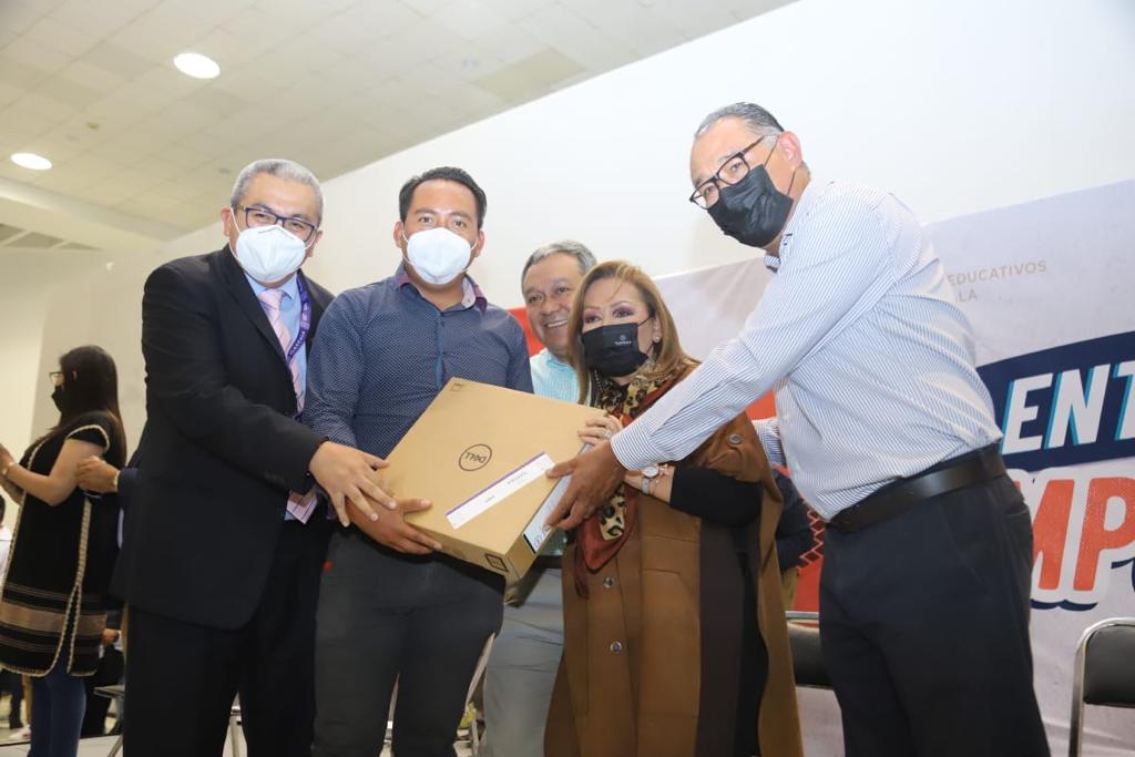 •Entregó 2 mil 10 computadoras que fueron sorteadas por la SEPE en el marco del Día del Maestro y 25 equipos más gestionados para Educación Especial