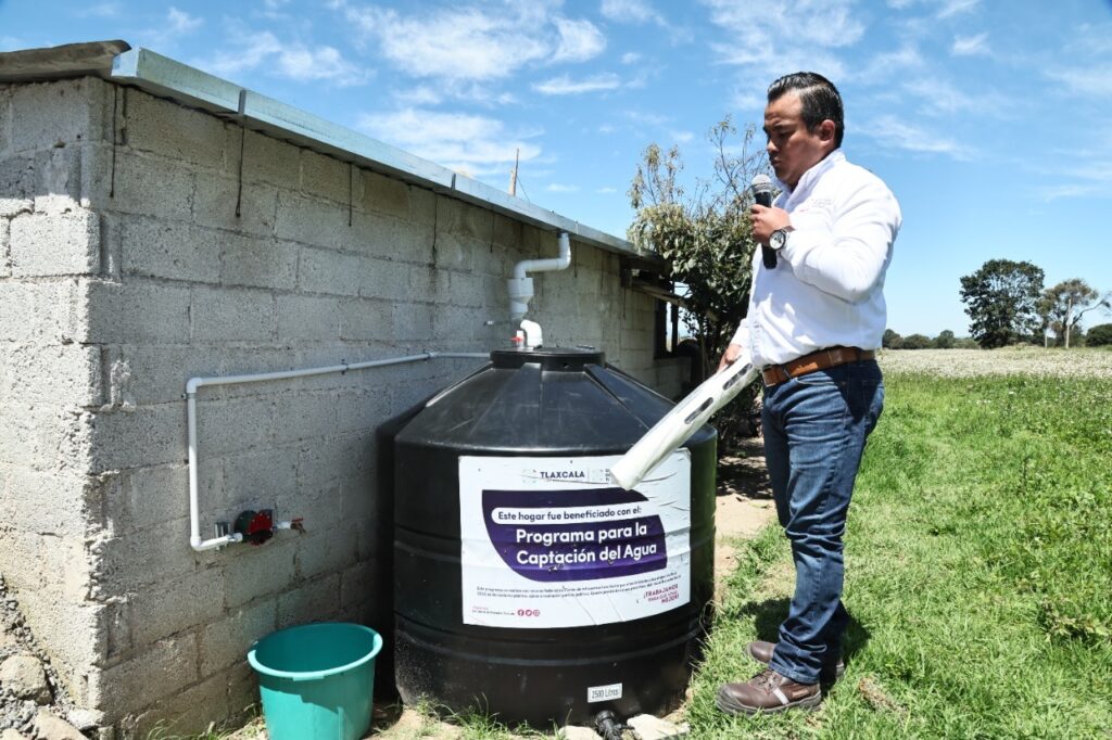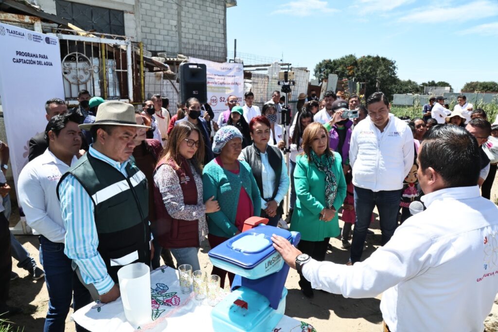 La gobernadora Lorena Cuéllar Cisneros realizó un recorrido de seguimiento del Programa de Captadores de Agua en la localidad El Cristo del municipio de San Pablo del Monte, donde visitó a beneficiarias y constató la instalación de los 50 equipos para la captación y tratamiento del agua pluvial para uso doméstico y consumo humano en beneficio de 195 personas de escasos recursos de esa comuna.