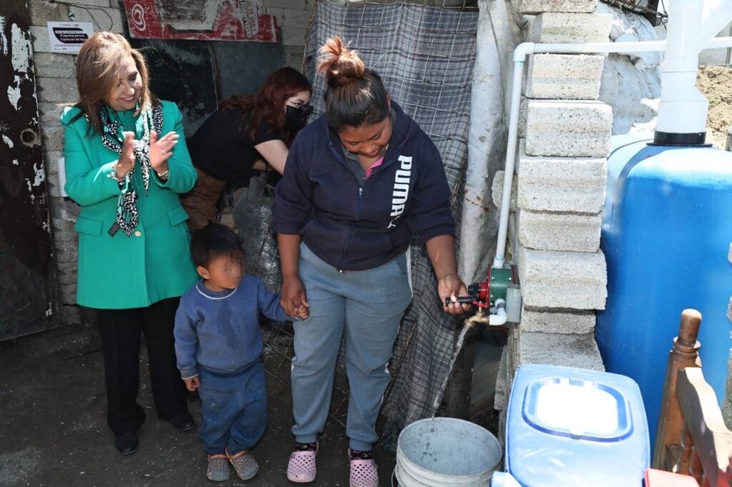 Durante la visita domiciliaria a beneficiarias que llevaban hasta ocho años sin agua potable, Lorena Cuéllar destacó la importancia de que estos apoyos lleguen directo a las personas que más lo necesitan.