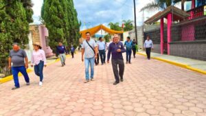 El presidente municipal de Tlaltelulco, Marco Antonio Pluma Meléndez, entregó a la comunidad de Santa Cruz Yoalcoatl la pavimentación de adocreto de la privada Victoria.