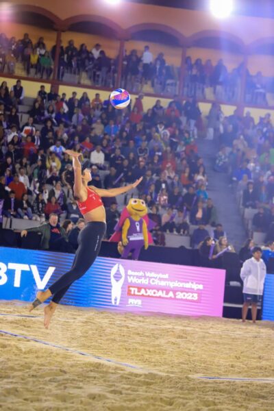 Los partidos de cuartos de final del Mundial de Voleibol de Playa Tlaxcala 2023 se vivieron en un ambiente impactante y lleno de matices la tarde de este viernes en la plaza de toros Rodolfo Rodríguez “El Pana” de Apizaco, donde se realizaron los partidos varonil y femenil, quienes buscaron su pase a la semifinal.