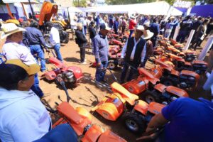 Durante el recorrido por la zona, se realizó la entrega de 30 rotocultores al mismo número de productores de diferentes municipios del estado, y una inversión de millón 580 mil pesos, con el objetivo de mejorar sus condiciones de trabajo en el campo tlaxcalteca.