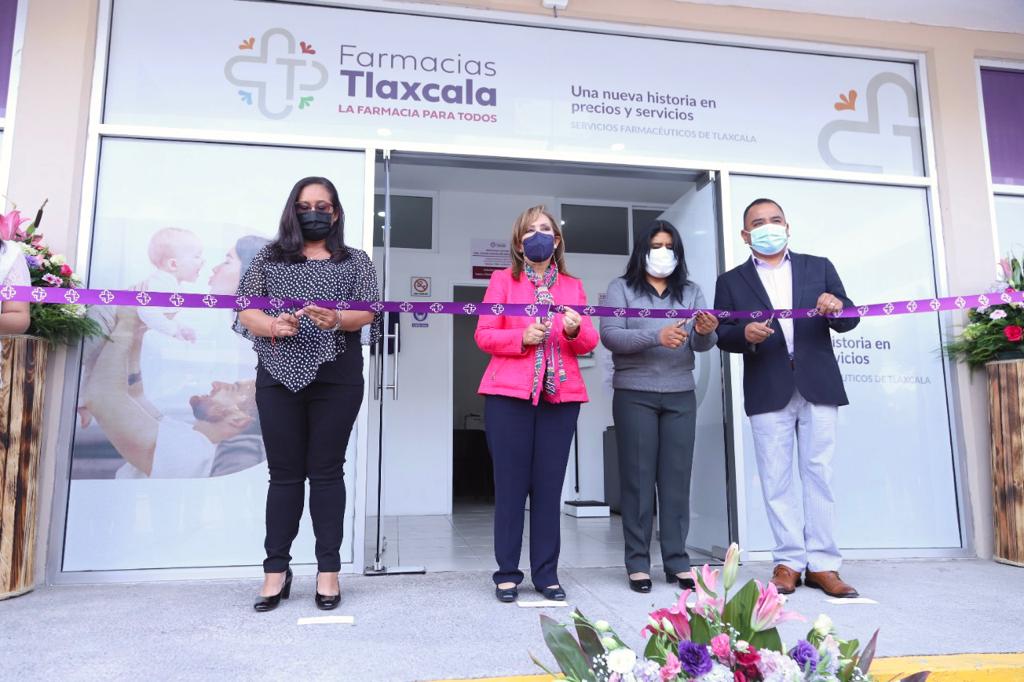 La gobernadora Lorena Cuéllar Cisneros realizó el corte de listón inaugural y develación de la placa de una sucursal de la Farmacia de Pensiones Civiles en el municipio de San Pablo Apetatitlán, en la que se invirtieron 2 millones 100 mil pesos en inventario de medicamentos y 235 mil pesos en infraestructura para dicha sucursal que atenderán a 2 mil 800 pensionados, jubilados y trabajadores en activo, con el objetivo de brindar mejores servicios en materia de salud.