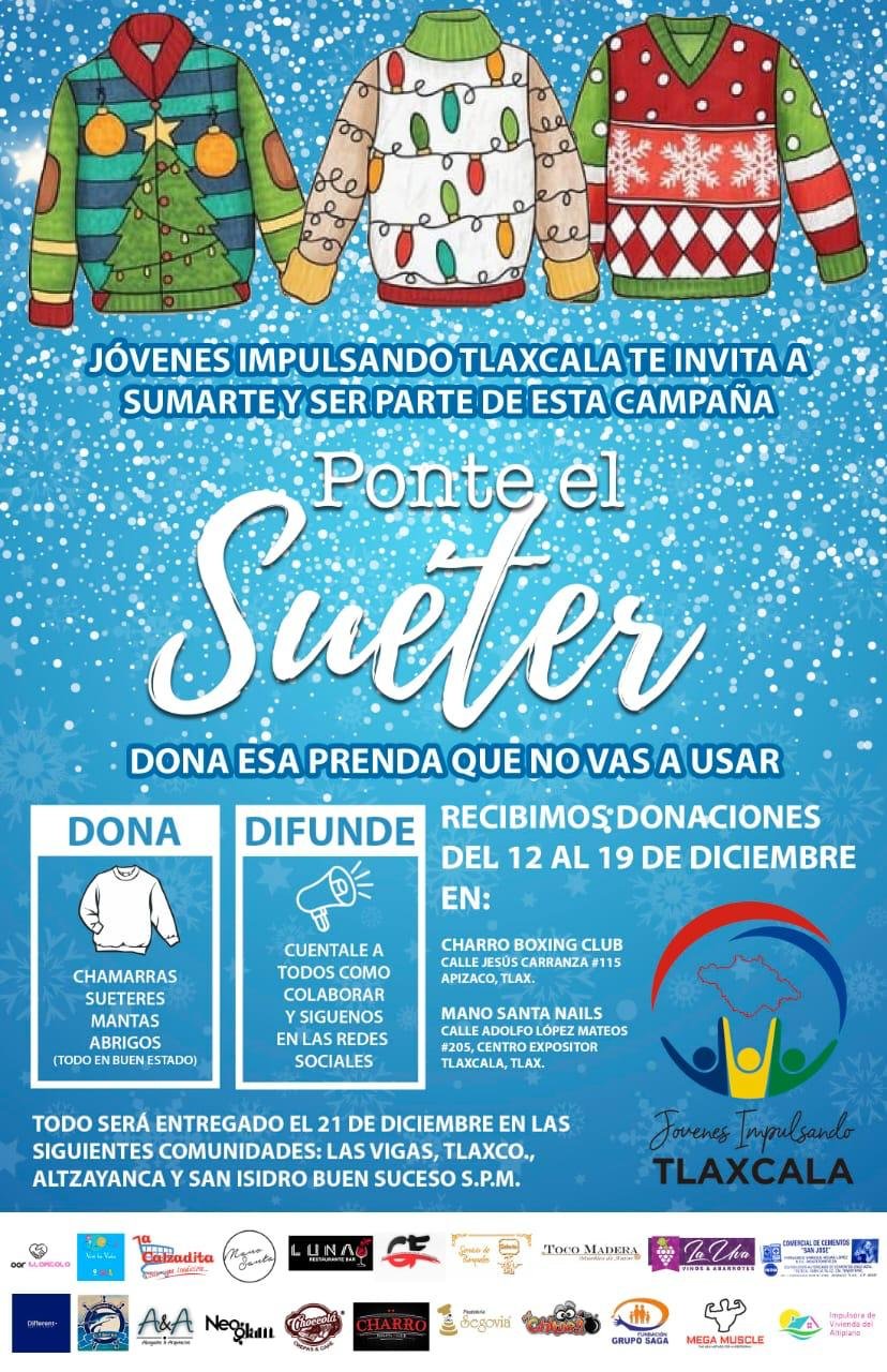 Te invitan a formar parte de la campaña “Ponte el suéter”, donando prendas que ya no usas como chamarras, suéteres, abrigos y mantas (Todo en buen estado).