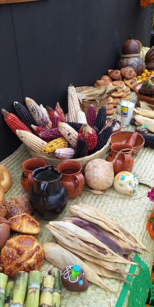 La ofrenda de Tlaxcala está dedicada a los fieles difuntos de Ixtenco, a quienes les ofrecen mole negro, camote, dulce de calabaza, naranjas, cañas, manzanas, guayabas, tejocotes, tamales, atole tradicional, pan de muerto en forma de muñequitos, “cascos”, pinole y por supuesto maíces de colores representativos del pueblo otomí, todo esto bajo la imagen de la virgen de la Guadalupe.