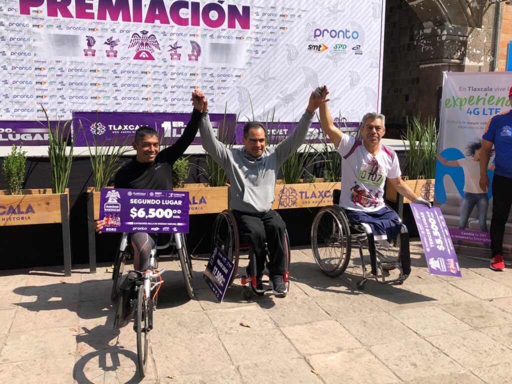 El zócalo de la ciudad de Tlaxcala fue el punto de salida y regreso, donde con un tiempo de una hora 22 minutos y 15 segundos, Leonardo Villafaña, seguido de Alejandro Pacheco Castillo y David Santiago Juárez, obtuvieron el primer, segundo y tercer lugar, respectivamente, en la categoría de Ciegos y Débiles Visuales.