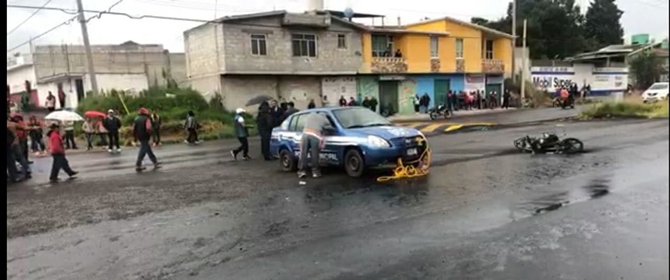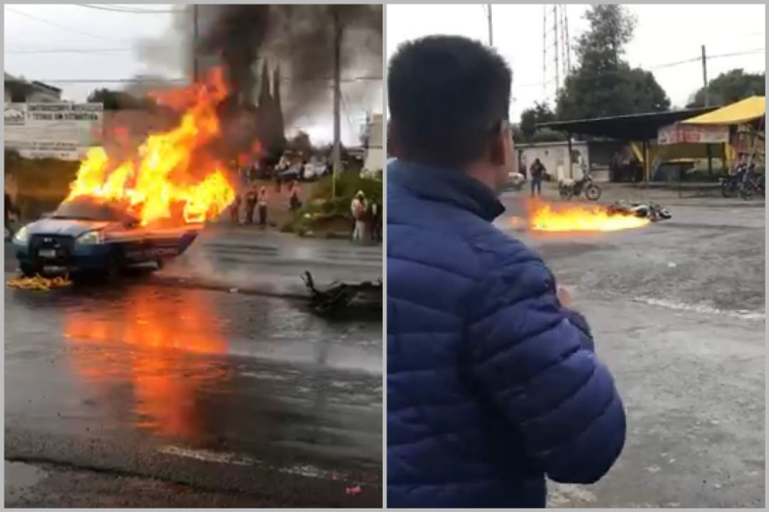 Alrededor de una hora después, incendiaron una patrulla, al parecer propiedad del municipio de Acuamanala, como medida de presión para exigir la presencia de autoridades estatales, a fin de resolver el conflicto limítrofe que existe entre Acuamanala y Quilehtla.