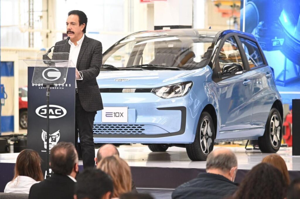 El gobernador Omar Fayad Meneses encabezó la presentación de los vehículos eléctricos de JAC México Pure Electric 2022, en el marco del 15 aniversario de la apertura de la planta de ensamble Giant Motors Latinoamérica, en la zona industrial de Ciudad Sahagún.