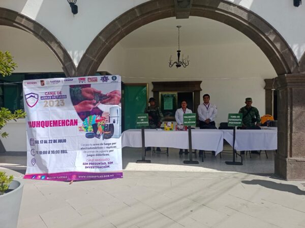Las mesas receptoras de armas de fuego están disponibles en los municipios de Zacatelco, Emiliano Zapata, Yauhquemehcan y Tlaxcala capital de lunes a viernes, de 10:00 a 16:00 horas y el día 22 de julio, de 10:00 a 14:00 horas.