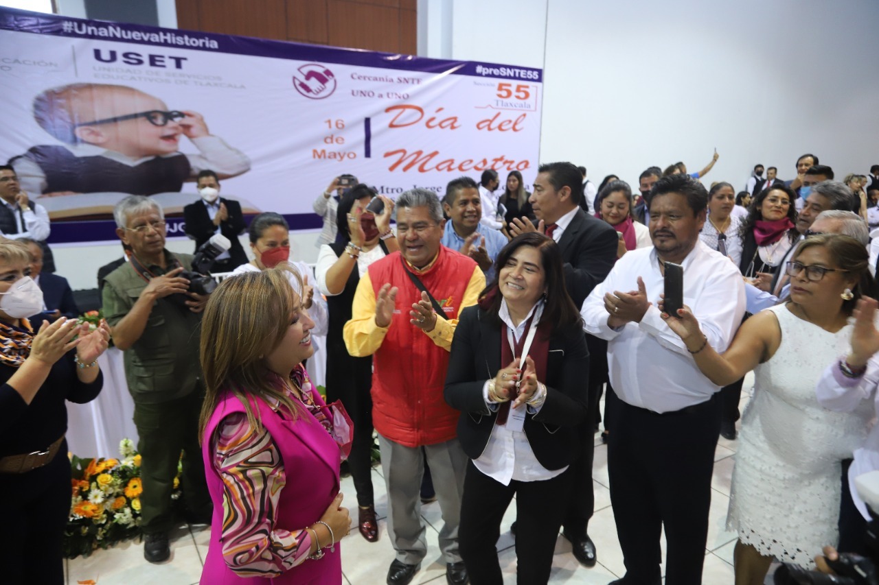 La mandataria estatal aseveró que está orgullosa y honrada de ser gobernadora de Tlaxcala, pero sobre todo de ser maestra, “de salir de las bases del magisterio, de llevar los valores que inculcamos a los niños en las aulas para que hoy como su gobernadora también trabajamos día a día para dar lo mejor a este estado”.