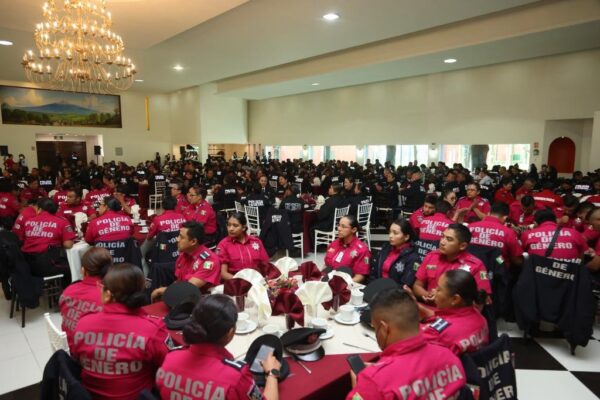 “Yo deseo que se sientan verdaderamente orgullosas y orgullosos de su labor, que transmitan a sus familias esa gran emoción del servicio, me alegra ver a tantas mujeres, es un honor para mí saber que en este camino de gobernar y velar por la seguridad me acompañan también muchas mujeres policías; quiero agradecerles a todos, reconocer su valor, su responsabilidad y su gran espíritu de servicio para este estado”, enfatizó.