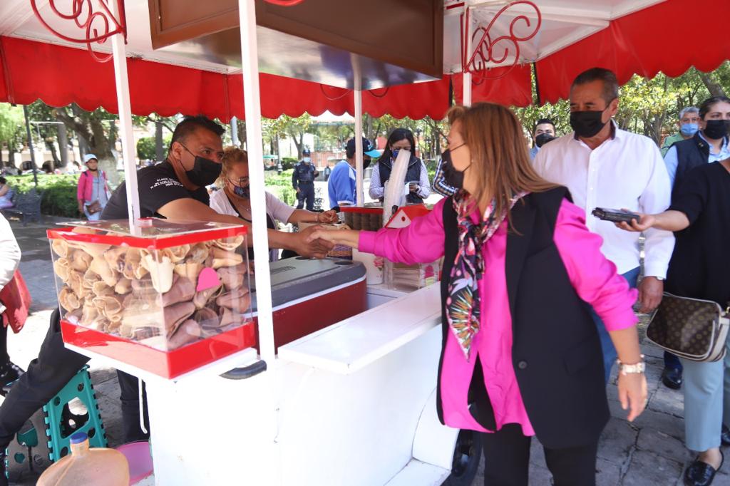 En el recorrido, la mandataria local saludó a los tlaxcaltecas que expenden alimentos y artesanías en los alrededores de los espacios, quienes agradecieron su visita, acercamiento y el contacto permanente con la ciudadanía.