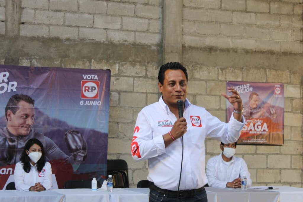En su recorrido por Tetlanohcan, Juan Carlos Sánchez García, SAGA, propone la creación de la Secretaría de Migrantes en su gobierno progresista.