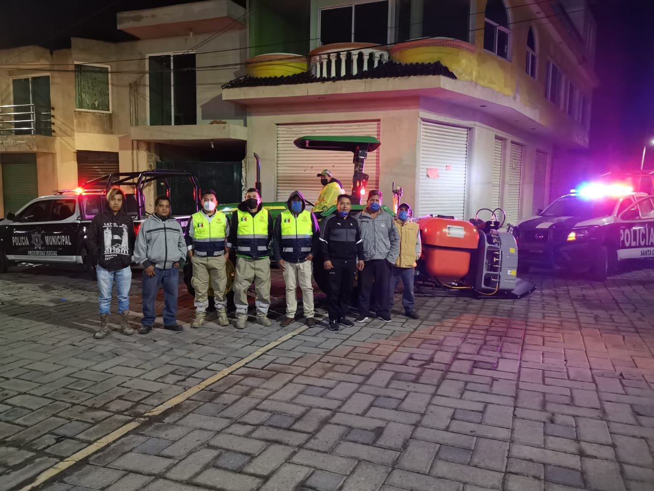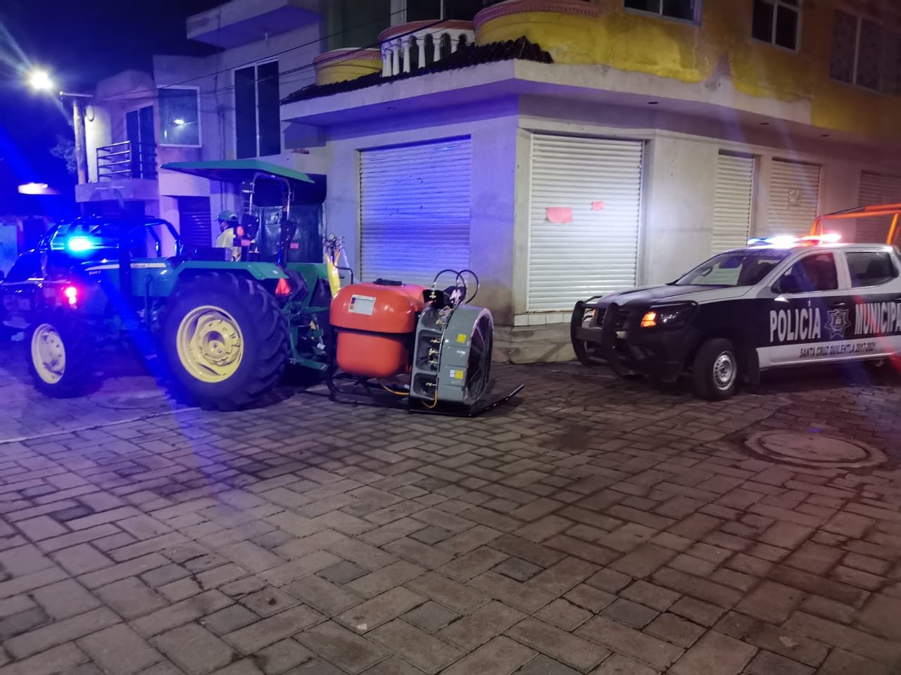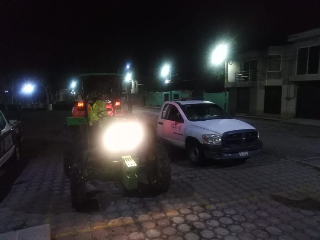 Con el objetivo de reforzar las medidas preventivas y reducir el riesgo de contagio de Covid-19, la madrugada de este domingo la dirección de protección civil municipal de Quilehtla a cargo de José Guerrero Rojas, en coordinación con la brigada de sanitización del estado, realizaron el recorrido con el apoyo de un vehículo tipo tractor que cuenta con un sistema adaptado de nebulizador con turbina que esparce 5 mil 760 litros de solución para lograr una desinfección con mayor alcance.