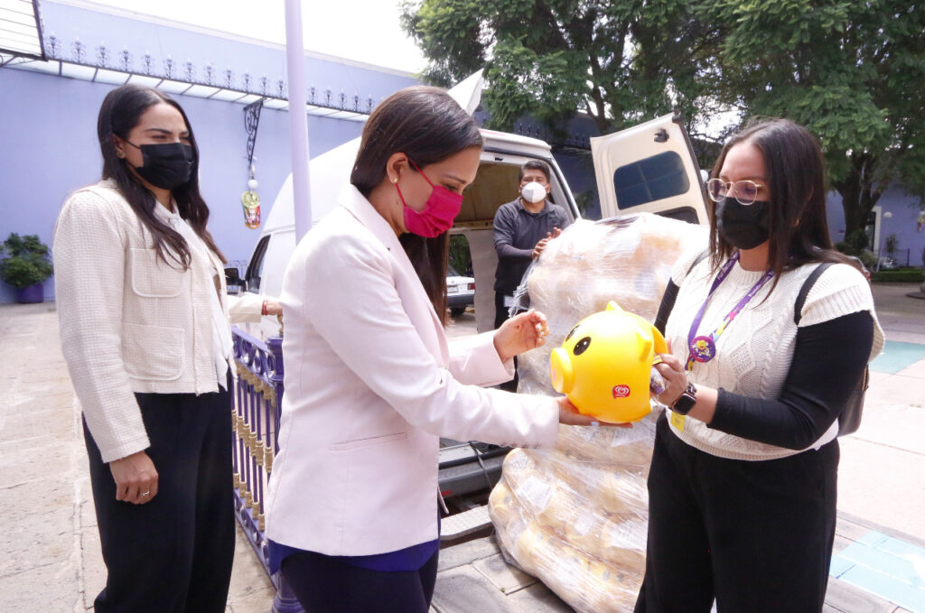 La promotora de recolección estatal del Teletón, María Esther López entregó a la presidenta honorífica y a la directora general del Sistema Estatal DIF, Mariana Espinosa de los Monteros Cuéllar y Flor López Hinojosa, respectivamente, las alcancías para la colecta de este año, en el que participarán los sistemas municipales DIF, así como algunas dependencias del gobierno estatal.