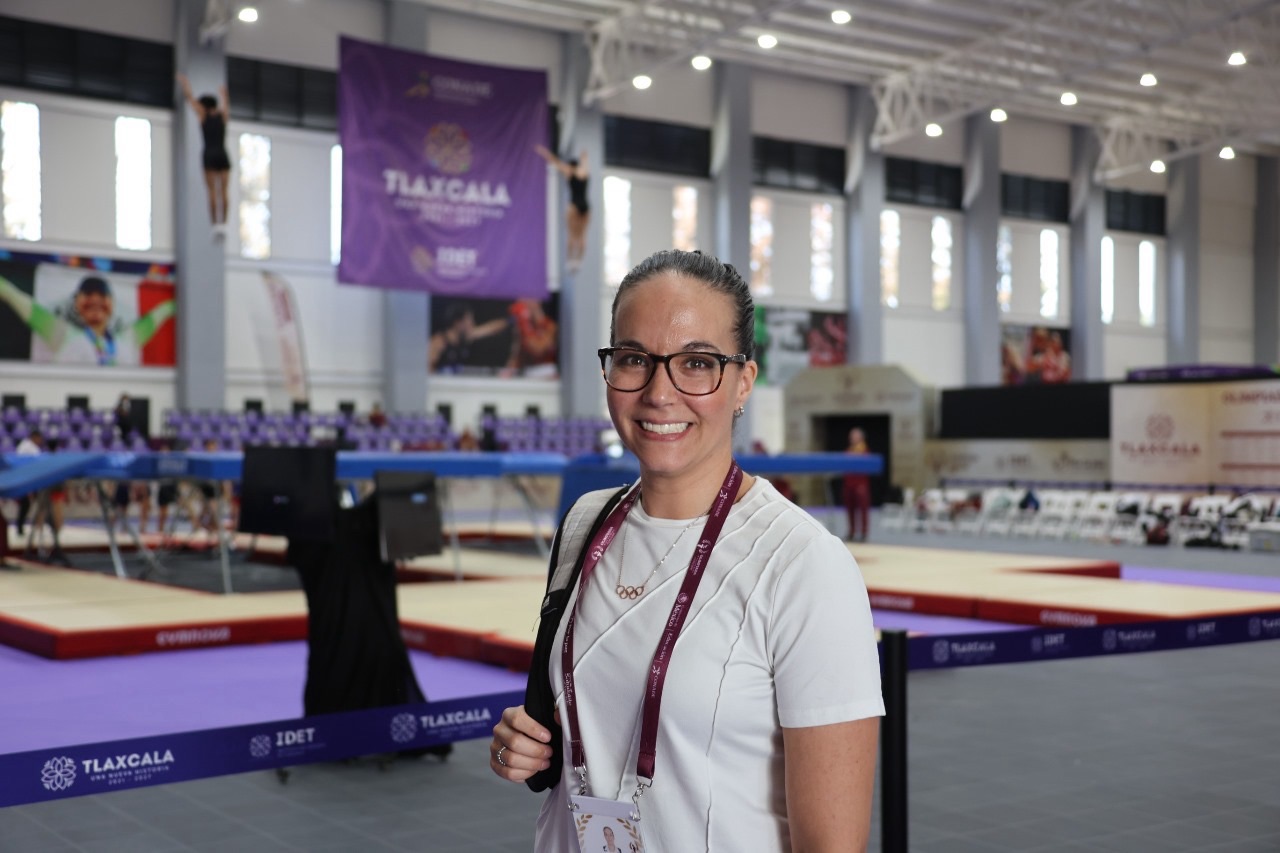 Paulina Nava Aceves, coordinadora de jueces, además de ser juez internacional de gimnasia de trampolín, destacó el nivel de competencia, las excelentes instalaciones y la organización de la Olimpiada por parte del gobierno de Tlaxcala.